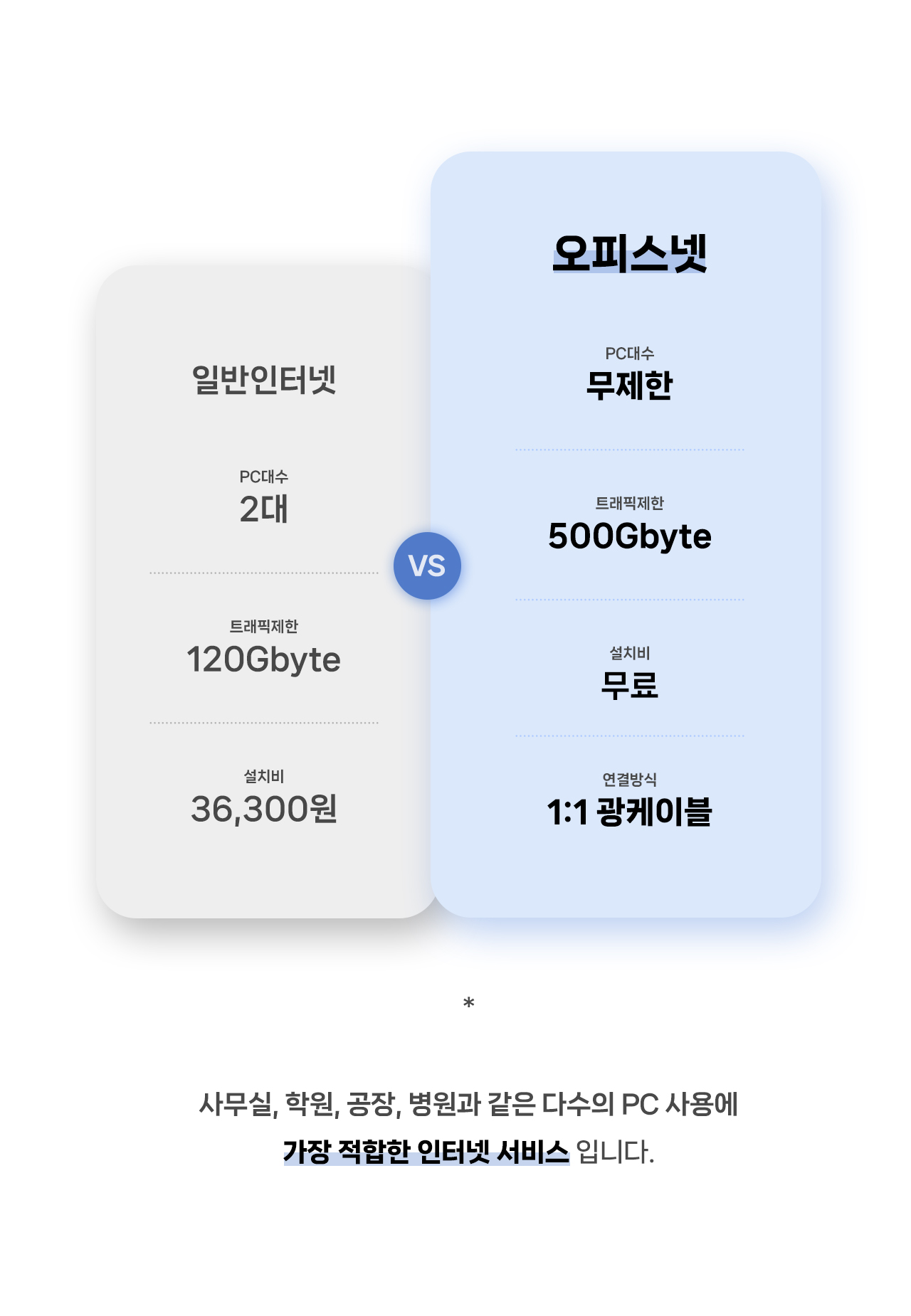 건물 내 광케이블을 구성하여 최대 1G 속도를 제공